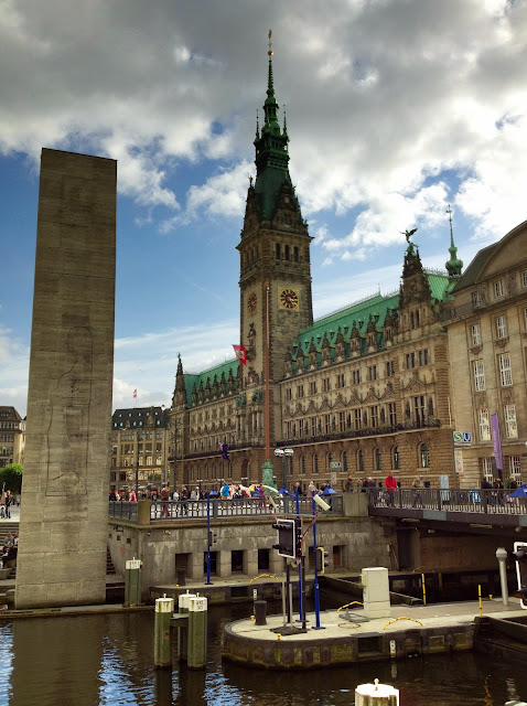 Hamburg Town Hall with the World War I memorial in the foreground. |